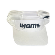 Add a splash of sparkle to your sunny days with this white visor featuring a bold black glitter U-Jam logo....